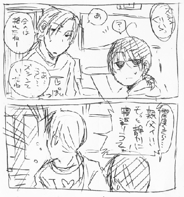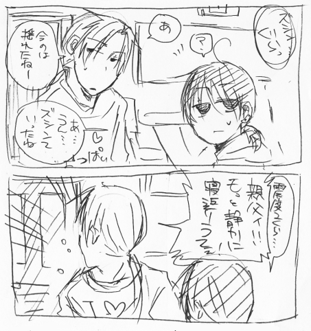 あと、今日は久々に単発漫画(引き抜き屋。)更新しました。何アレ、ジュニア超こわい。ホラーだよ、ホラー。