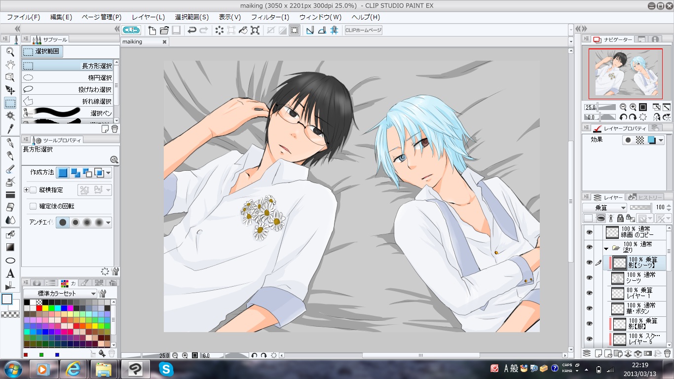 ここで色調補正とか使いまくって大宮の黒部分と、シーツの色を調整。
