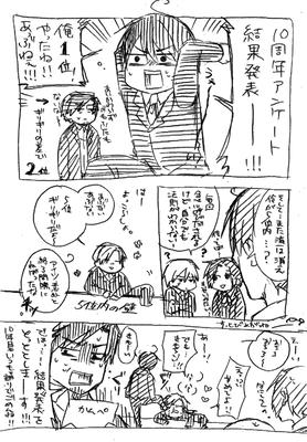 あと、「10周年になってもくっつかなかったら永遠にくっつかない」とか去年言っちゃったせいか、田中と鈴木の組み合わせが次点。珍しく、夜神ジュニアと江戸の組み合わせや、大宮兄弟よりも票が集まりました。●藻への質問など●