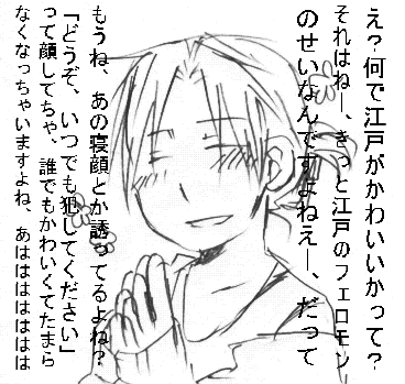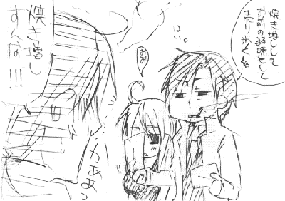 ⇒江戸、かなあ、やっぱり。とくに彼の目。イラストやシーンによってかきわけてます。一応。でもやっぱり目付き悪いほうがかいててたのしいなあ。